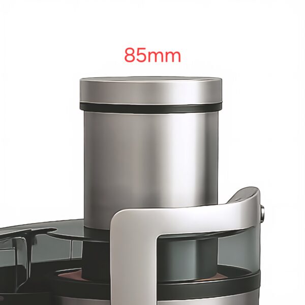 دهانه بسیار بزرگ با عرض ۸۵ میلیمتر روی این آبمیوه گیری بسیار بسیار کار کردن را آسودهو سرعت کار رو چندین برابر میکند دیگه نیاز به قطع قطعه کردن میوه ندارید و یک سیب کامل و درسته رو میتوان داخل این دستگاه انداخت.