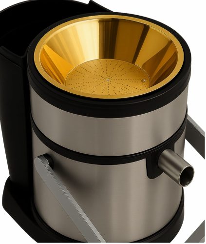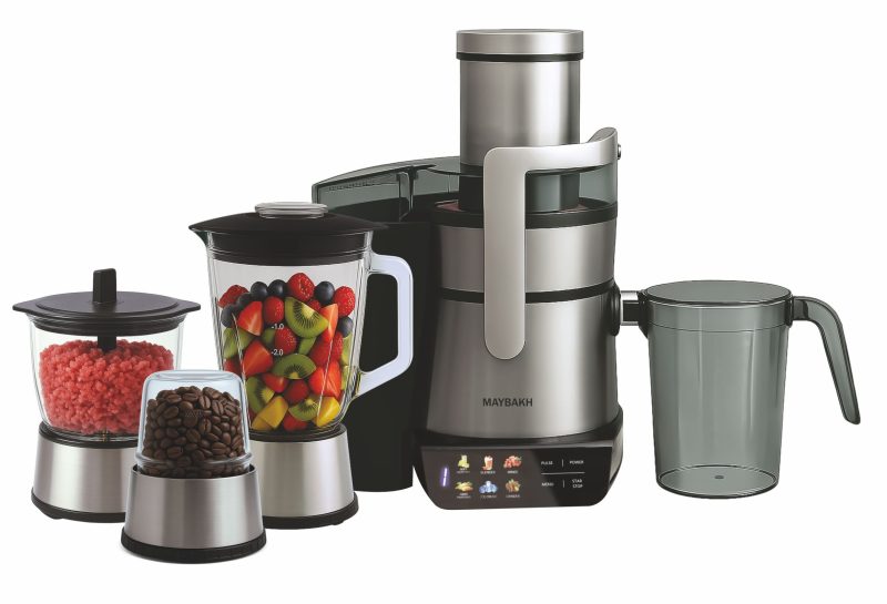 آبمیوه گیری چهارکاره میباخ با توان مصرفی ۱۶۰۰ وات و بدنه تمام استیل،که یک تیغه تماماً از پوشش تیتانیومی داره که کیفیت تیغه رو چندین برابر کرده.