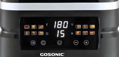 سرخکن ۷ لیتر گوسونیک مدل GAF-847 دارای 2000وات توان مصرفی قابل تنظیم داره سیستم کنترل دما هم در المنت بالا و هم در المنت بالا کار شده وشش داخلی ظرف ۸۴۷ گاسونیک کاملاً گرانیتی و شستشوی بسیار راحتی داره یه محفظه شیشهای برای مشاهده مواد غذایی روی ظرف اصلی کار شده که زمان پخت میتونید نور داخلی برای مشاهده مواد غذایی روشن کنیم ۱۲ تا منوی پخت.