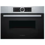 فر مایکروویو توکار بوش مدل CMG633BS1I سری 8 جز دسته محصولات توکار شرکت بوش محسوب می شود این فر مایکروویو پنل استیل و دربی از جنس شیشه مشکی دارای ظاهری بسیار مدرن می باشد این فر مایکروویو بوش دارای سیستم گرمادهی گریل علاوه بر سیستم ماکروویو نیز می باشد، شما با تهیه این دستگاه در حقیقت یک فر توکار بوش و یک مایکروویو را همزمان در آشپزخانه خود خواهید داشت این مدل دارای یک صفحه نمایشگر لمسی 2.5 اینچی است با سیستم TFT می باشد که در قسمت فوقانی دستگاه قرار دارد این امکان را به شما می دهد تا به برنامه های پخت دسترسی داشته باشید و تنظیمات مورد نظر خود را اعمال کنید کار کردن با آن به قدری آسان است که شما از کار کردن با آن لذت خواهید برد در پنل فر مایکروویو کامپکت توکار بوش مدل CMG633BS1I کامپکت برای سهولت کار ساعت، دما و سایر اطلاعات بر روی صفحه ی دیجیتالی به نمایش گذاشته شده است این دستگاه پس از پایان پخت فرمایکروویو به صورت اتوماتیک خاموش می شود که این ویژگی موجب صرفهجویی در مصرف انرژی نیز می گردد