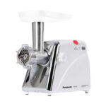 چرخگوشت پاناسونیک مدل MK- 2500 از جدیدترین محصولات عرضهشده توسط پاناسونیک است. این محصول ظاهری کلاسیک و در واقع مشابه نسل قدیمی تر خود یعنی MK-GN1760 دارد و شامل بدنه پلاستیکی مشکی رنگ بعلاوه قطعات فلزی و متعلقات است. کیفیت ساخت بدنه بالا بوده و از مواد مرغوب استفادهشده است تا علاوه بر زیبایی ظاهر، از موتور جدید با حداکثر قدرت 2500 وات، محافظت کند. زیربدنه اصلی پایههای ضد لغزش در نظر گرفتهشده است تا با حرکت موتور لرزش و لغزشی ایجاد نشده و خطری بروز نکند. گلویی دستگاه در جلو با پیچ محکم شده و سینی فلزی روی آن قرار میگیرد. مارپیچ فلزی چرخگوشت پاناسونیک مدل MK- 2500 داخل لوله، تیغه و شبکه بر روی آن نصبشده و با پیچ نهایی محکم میشوند. نصب قطعات بسیار راحت بوده و سریع انجام میشود. سیم برق در پشت دستگاه است و از طول مناسبی برخوردار است که پس از اتمام کار میتواند در محفظه مربوطه قرار گیرد. دستگاه با دکمههای روی آن روشن و خاموش میشود. البته دکمه چرخش معکوس هم در این مدل در نظر گرفتهشده است.